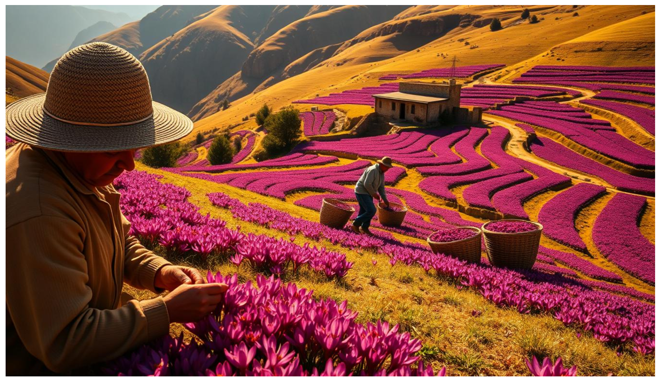 Harvesting saffron starts early in the morning. Workers pick the flowers by hand before the sun gets too strong. This careful process makes sure each thread is full of flavor, which is why saffron is so expensive.
